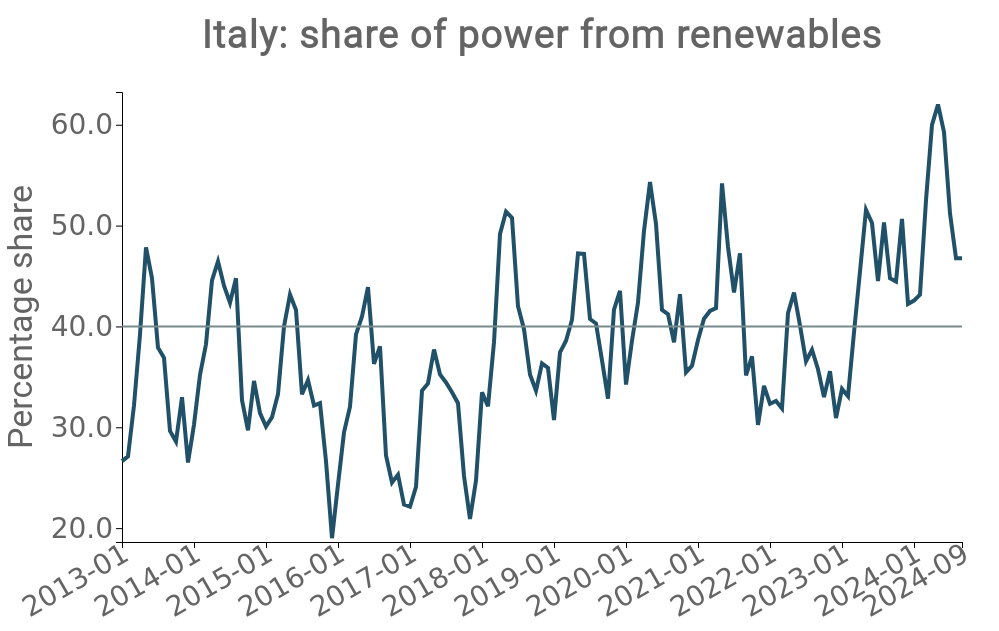 Electric Power Price DriversIn the Italian energy market, the effect of renewables becomes significant when they exceed 40% of total production [ Read all ]