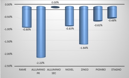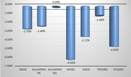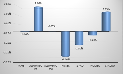 Indicatori Congiunturali Settimana Finanziaria Materie PrimeDopo la riduzione dei prezzi dei metalli ferrosi a causa della mancata ripresa cinese, il prezzo del rame ha avuto un calo nel corso di quest'ultima settimana [ leggi tutto ]