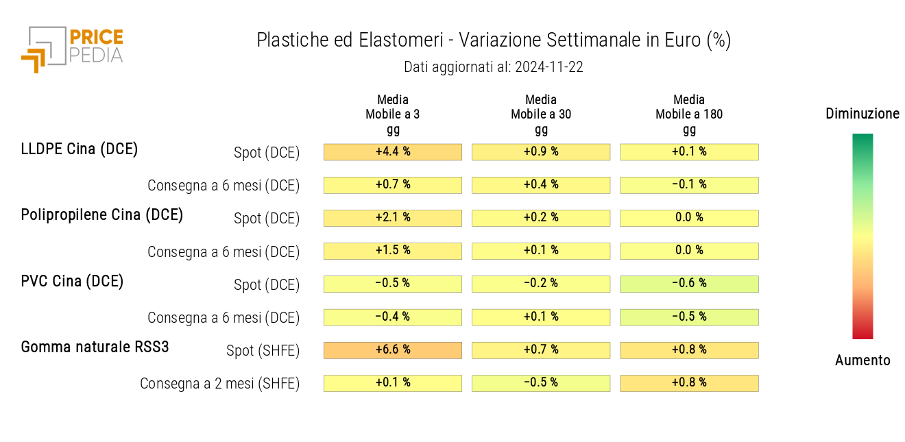HeatMap dei prezzi delle materie plastiche e degli elastomeri in euro