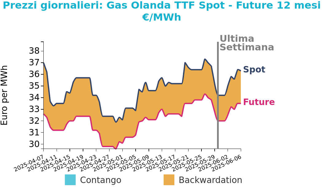 - TTF Olanda 36.3 €/MWh (+2.1 €/MWh)