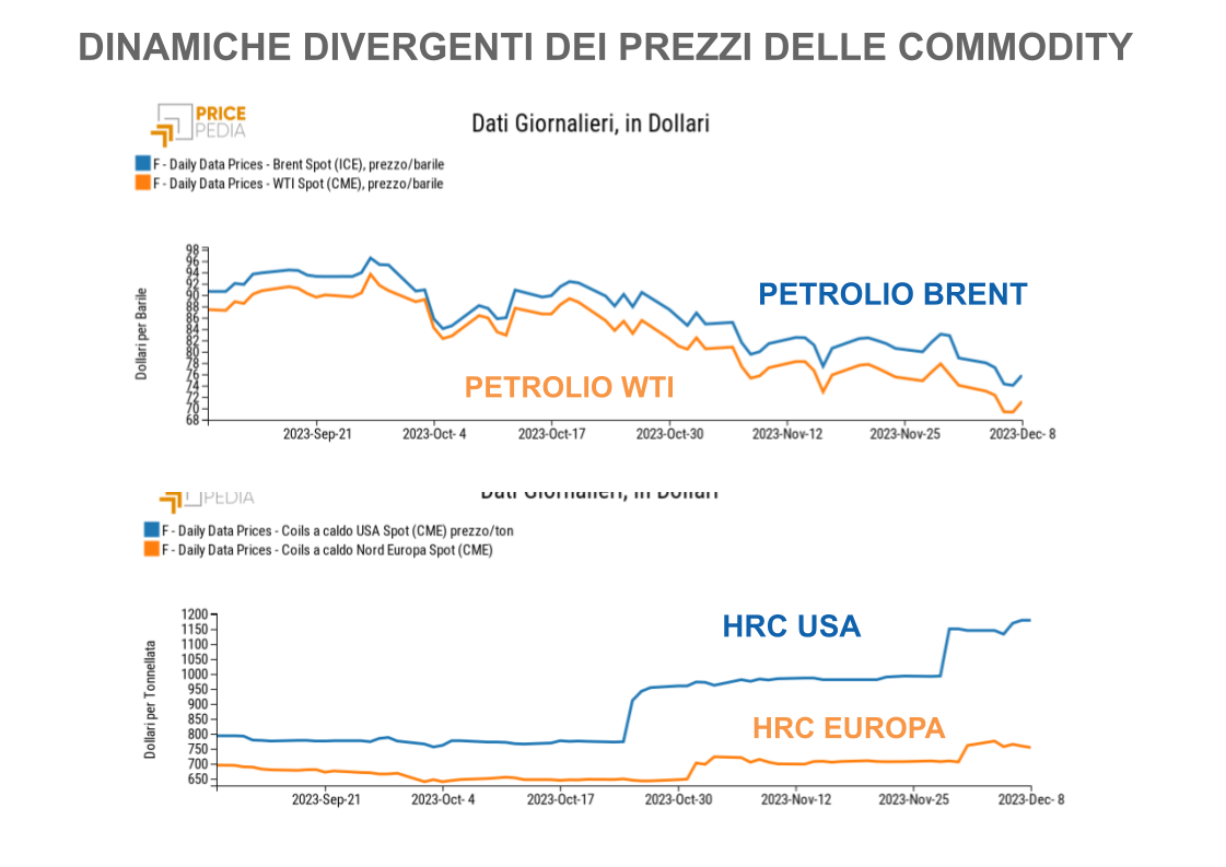 Trend opposti per i prezzi del petrolio e dell’acciaio HRC