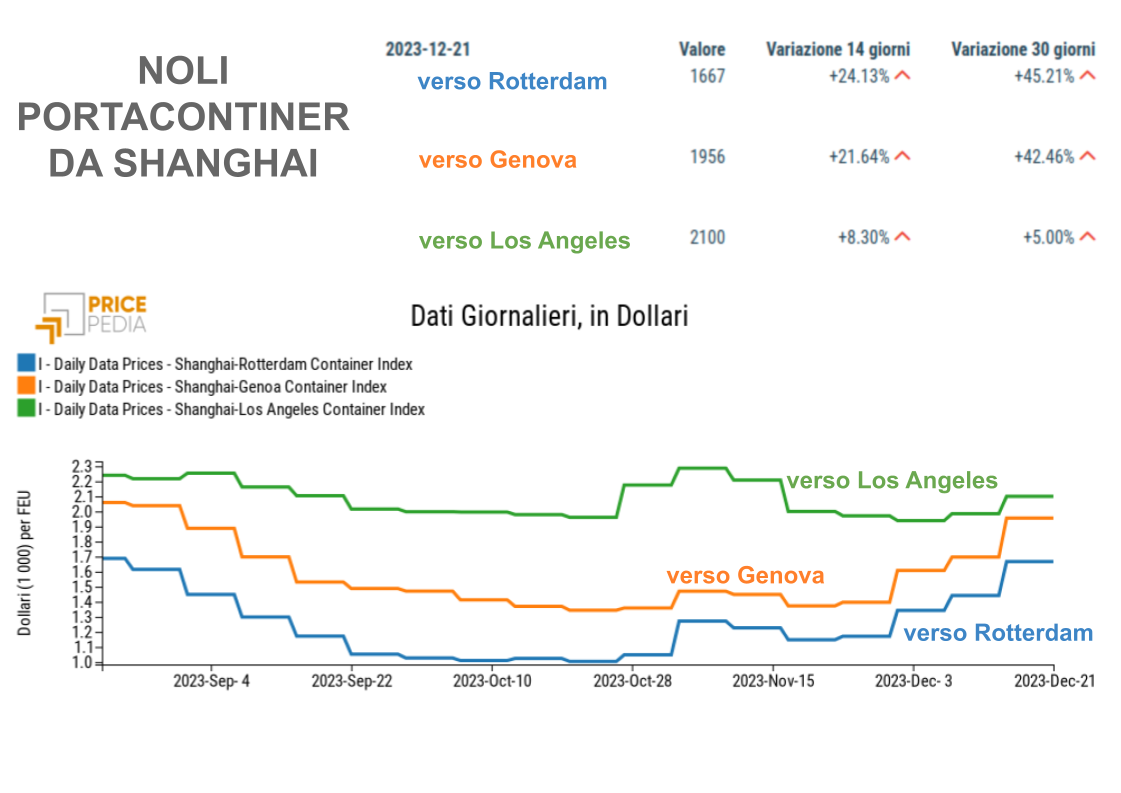 Indicatori Congiunturali Settimana Finanziaria Materie PrimeLa minaccia degli attacchi Houthi alle navi in transito sul mar Rosso spinge in alto i noli [ leggi tutto ]