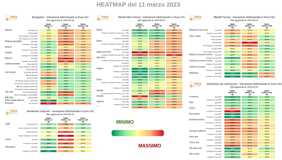 Indicatori Congiunturali Settimana Finanziaria Materie PrimeQuasi tutti i prezzi delle materie prime hanno chiuso la settimana in crescita [ leggi tutto ]