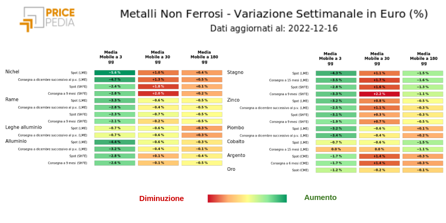 Analisi settimanale dei prezzi finanziari delle materie prime