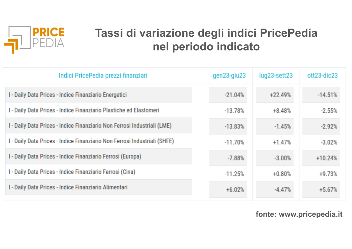 Indicatori Congiunturali Settimana Finanziaria Materie PrimeIl 2023 si chiude con prezzi delle commodity guidati solo da fenomeni specifici ai diversi mercati [ leggi tutto ]